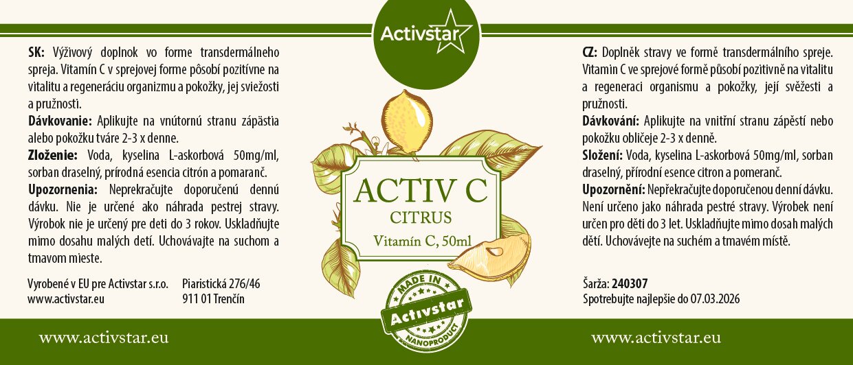 Witamina C w formie sprayu ma pozytywny wpływ na witalność i regenerację organizmu. Przyczynia się do regeneracji skóry, jej świeżości i elastyczności.