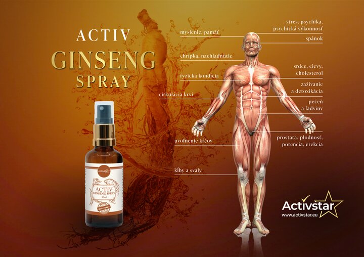 Activ Ginseng spray zawiera 6-letni czerwony żeń-szeń koreański (Panax ginseng red), który znany jest ze swojego wyjątkowego wpływu na organizm.