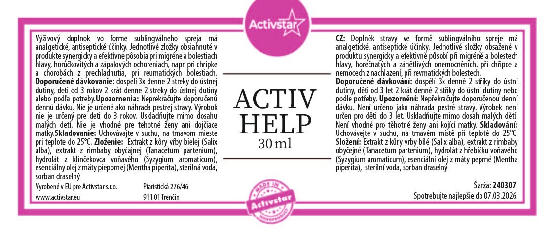 Activ Help spray podjęzykowy 30 ml - suplement diety z ekstraktami roślinnymi, hydrolatami i olejkami eterycznymi. Praktyczna forma sprayu do codziennego stosowania.
