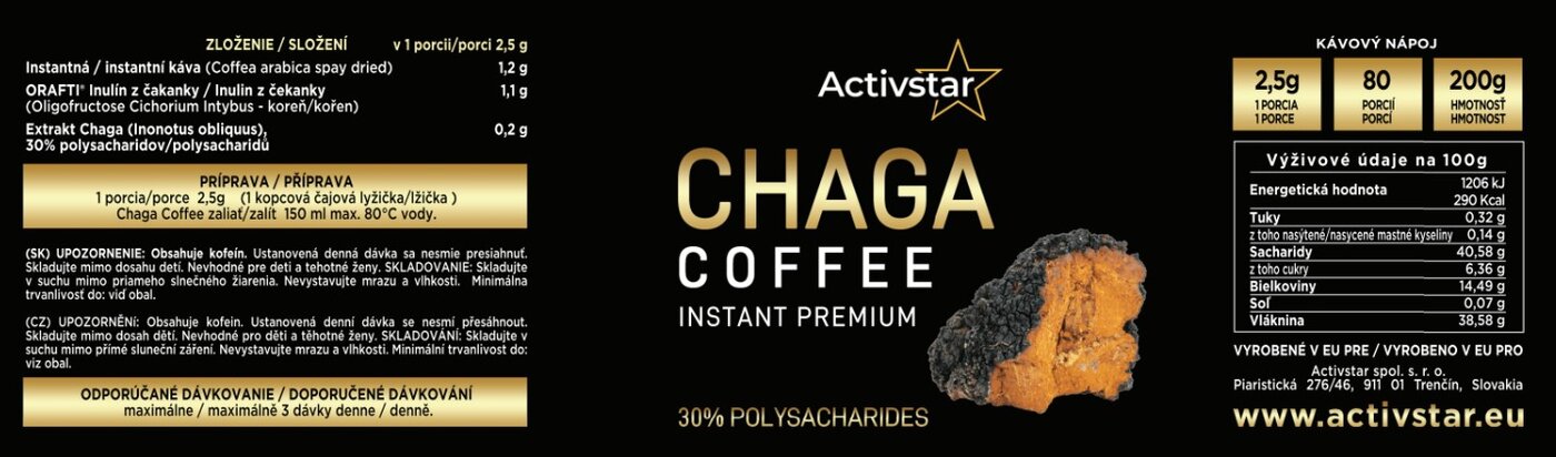Charakterystycznym elementem receptury jest ekstrakt z grzyba Chaga (Inonotus obliquus) o deklarowanej zawartości 30% polisacharydów.