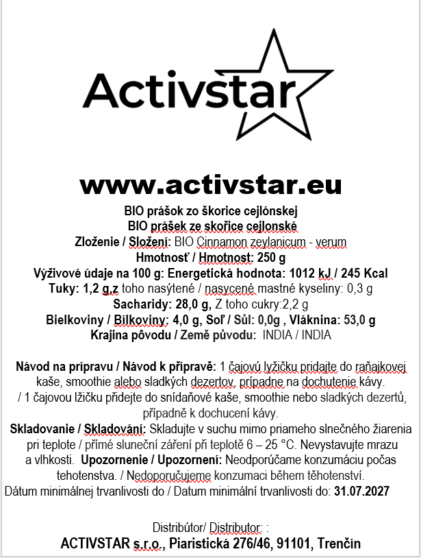 Dystrybutor: Activstar s.r.o., Trenczyn